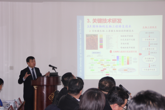 会议由中国循环经济协会副秘书长郭占强主持,项目团队带头人西安建筑科技大学教授金鹏康进行了汇报。西安建筑科技大学原副校长王晓昌、科技处处长牛广召,鄂尔多斯市环保局总工程师玛喜毕力格,乌审旗旗委常委、人大常委会主任宝音满都呼,乌审旗旗委常委、宣传部长冯志明,乌审旗政府副旗长周帅,乌审旗环保局局长边宏耀,乌审旗科技局局长赵雄伟,乌审旗环保局总工程师蔺忠,内蒙古恒盛环保科技工程有限公司董事长李彦平及项目组全体成员参加会议。