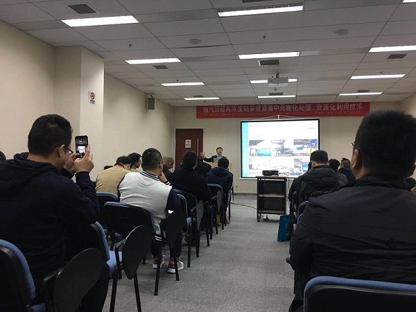 2019年3月28日上午10点10分我公司针对油气田钻井泥浆、压裂返排液无害化处理、资源化循环利用技术举办了高峰论坛。我公司副总经理李广平与西安建筑大学金鹏康教授共同与与会专家领导进行深入交流,恒盛环保以超前的理念、先进的技术开创了国内油气田钻采废弃物资源化处理的先河,受到业界高度评价。